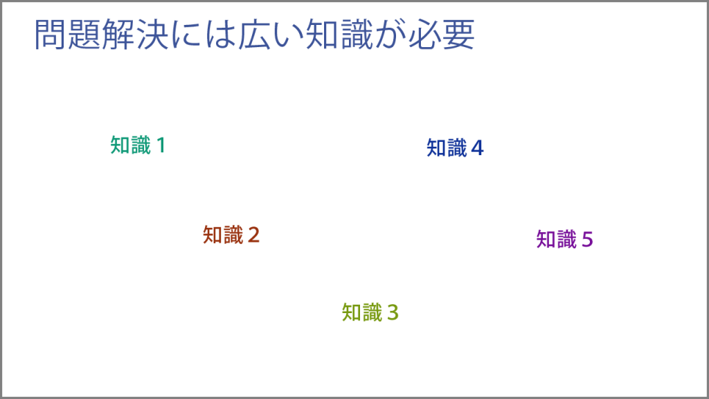 色んな人と色んな作業をするため、知識の広さが必要になります。すべてを深く知る必要はありませんが、知らないことは手を出しにくいのが人間というものです。また他人の活動を知らずして他人の担当範囲や関心事は解りません。